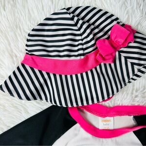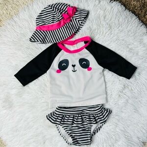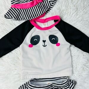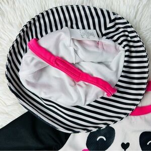 Gymboree White and pink panda striped bathing suit and hat set size 6-12 months