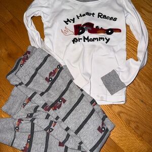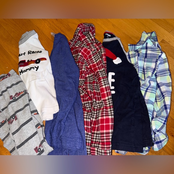 Soft gray pajamas, 2 button down dress shirts and 2 long sleeve shirts. One is a Christmas shirt. All in good condition.