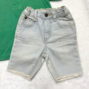 Gymboree green polo 18-24, frayed hem shorts 12-18
