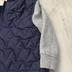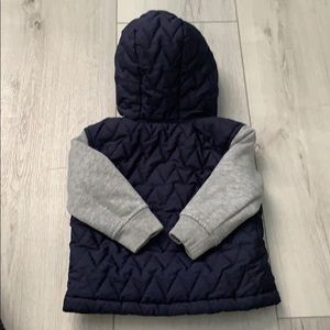 Gymboree jacket with hoodie. Beautiful navy blue, and grey arms sweat detail.