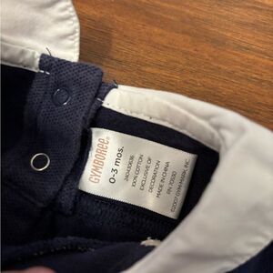 Gymboree navy embroidered flowers short sleeve romper. Collared. Snaps. 100% cotton. Size 0-3 months. Good condition!