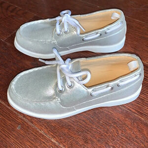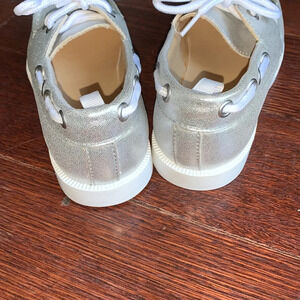 Gymboree size 1 silver lace up slip on boat shoes casual fun metallic
