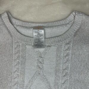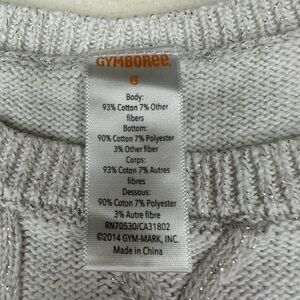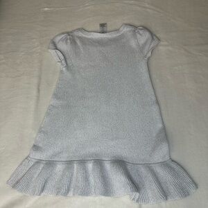 14 Winter 2; cream w/ metallic thread; round neck; short puff sleeves; drop waist; ruffled hem