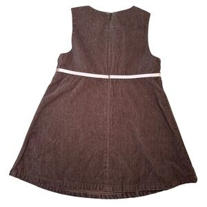 Vintage Gymboree toddler dress size 3T brown corduroy jumper soft herringbone texture with pink satin trim little bow detail and embroidered woodland animal fox squirrel and floral accents rare 2003 collection retro kids clothing cottagecore aesthetic forest fairycore woodland whimsy girly vintage toddler clothes nostalgic y2k children's fashion fall outfit harvest season dress cozy autumn vibes Thanksgiving outfit family photos holiday dress collectible Gymboree line boutique quality preppy classic heritage style timeless girls outfit playful storybook look cottage chic little girl vintage clothing heirloom piece traditional design quality fabric lined dress back zipper adorable retro style woodland creature embroidery cute toddler fall fashion seasonal staple timeless fall wardrobe piece