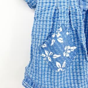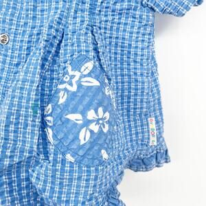 Gymboree x Vintage Toddler Boys Seersucker Plaid Hawaiian Tropical Print Shirt in Blue and White. Size Medium.