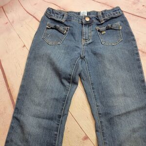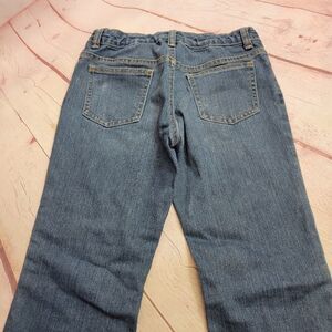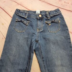 Gymboree jeans 8 adjustable. Bow on front pockets. Faded spot on back pocket. GUC. 12" waist, adjustable. 31" totallength. 24" inseam. 12 oz