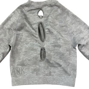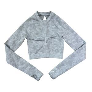 Gymshark Adapt Light Gray Camo Long Sleeve Crop Top Shirt Keyhole Back Size XS