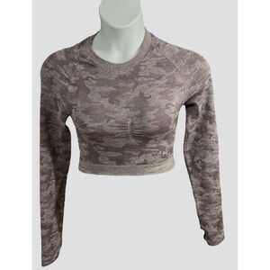 Gymshark Adapt Purple Camo Long Sleeve Cropped Gym Top Workout Medium
