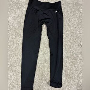 Your workout-to-errands uniform ✅ Black Gymshark leggings with iconic waistband logo. High-waisted, compression fit, size XS (measurements in pics). Pre-loved condition but tons of life left.