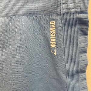 Stylish blue high-waisted leggings by Gymshark. Features intricate detailing on the sides. NO TAGS. PLEASE SEE MEASUREMENTS