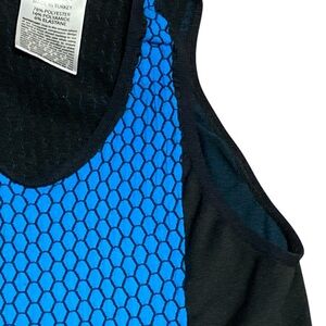 Stylish Gymshark tank top. Blue mesh front. Black trim and back. Perfect for workouts.