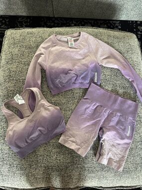 Black Gymshark bundle includes long sleeve top (medium), biker shorts (small), and leggings (small). All in great condition!