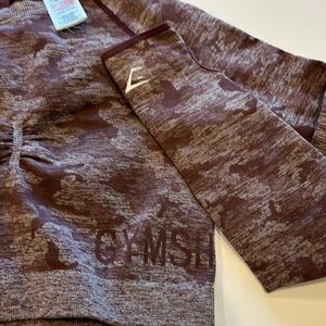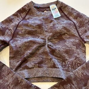 Gymshark‎ Camo Seamless L/S Crop Top workout Burgandy size small