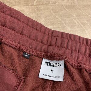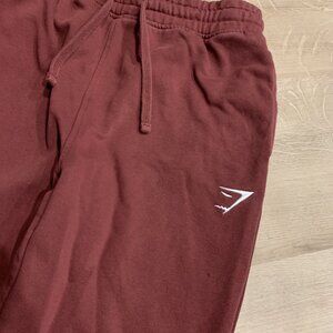 Gymshark Crest Joggers Pants Men's Medium M Slim Fit Maroon Sweatpants Gym Shark Fleece Active Athletic Cuffed Burgundy Embroidered