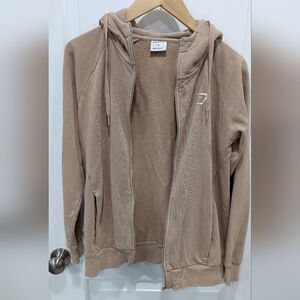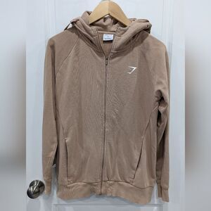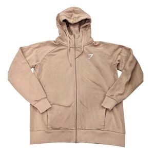 Gymshark Crest Oversized Zip Up Hoodie Jacket Sweatshirt Lifestyle Brown Tan S