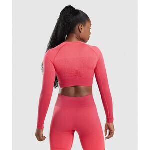 NWT Gymshark Adapt Ombre Seamless Long Sleeve Crop Top Raspberry Marl Red Small