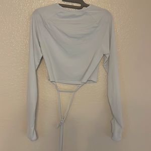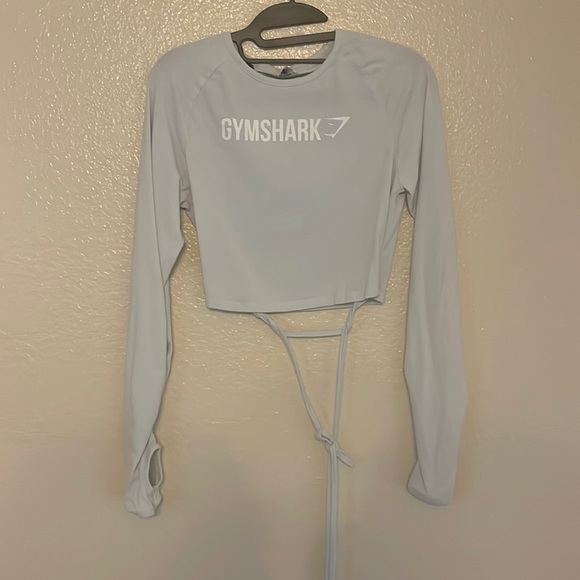 Baby blue Gymshark crop top. Like new condition. Super cute string ties that make for a ballet studio style outfit. Also has thumb holes. Make me an offer :)!