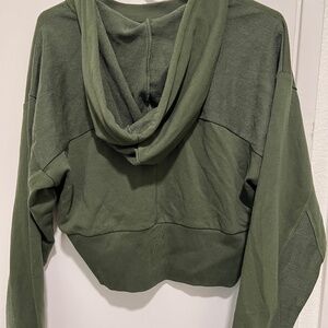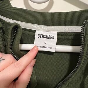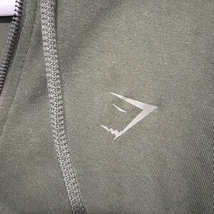 Gymshark cropped zip up sweatshirt size L. Only worn once! Super soft and lightweight material in a gorgeous army green!