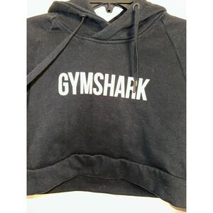 DETAILS: Gymshark Cropped Hoodie Women's Medium Black Pullover Sweatshirt Long Sleeve