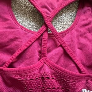 Gymshark Energy seamless sports bra in Berry. Pullover, cross back, thick ribbed band. 94% nylon/6% elastane. Women’s Size XS. Pre-owned in very good condition, no holes or stains, does not have removable pads.