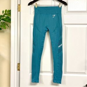 Gymshark Flawless Knit Leggings High Rise Compression Seamless Teal.