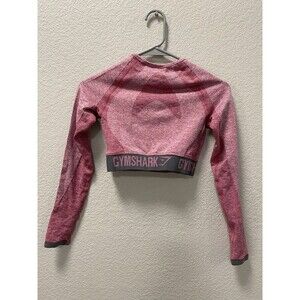 Excellent condition Gymshark Flex long sleeve cropped athletic/workout top. Seamless, sweat-wicking fabric keeps you dry during your workout. Round neckline, long-sleeved. Fits snugly. Dusty rose pink marled color with contrasting grey logo band at bottom/hem.