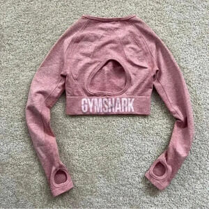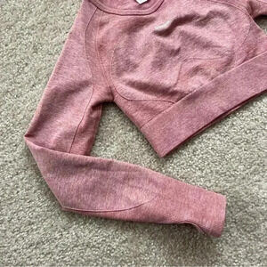 Gymshark Flex Crop Top Long Sleeve Active Deep Blush/White Size Small GLCT3857. Preowned condition, normal wear, a couple of small material snags, pictures provided