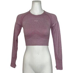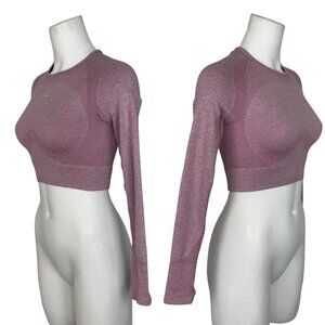 Gymshark Flex Sports Long Sleeve Crop Top S Light Purple Marled Thumb Hole Logo