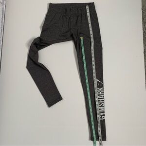 Gymshark Gray Athletic Wear Leggings with elasticized waist band and Gymshark logo and name printed on pant leg