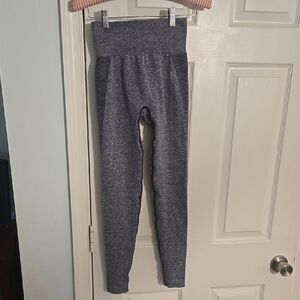 These Gymshark leggings feature a high waistband for optimal support and a sleek, form-fitting design. Crafted in a versatile gray color, they offer a comfortable stretch perfect for athletic activities or casual lounging.
