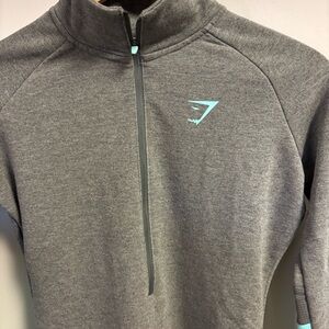 Gymshark Gray and Teal Long Sleeve Athletic Top