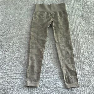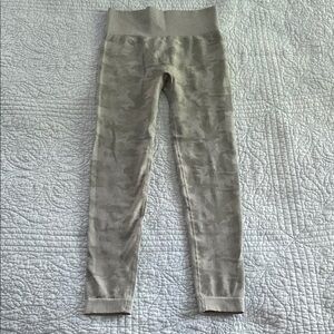 These Gymshark leggings in a sublet camo pattern offer a perfect blend of style and comfort. Featuring a snug elastic waistband and a sleek tapered fit, they are ideal for both workouts and casual wear. Crafted from a soft, cozy fabric, these leggings ensure a comfortable experience throughout the day.
