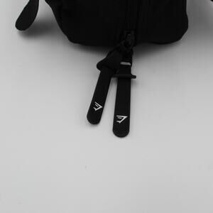 Features top zip closure, inner mesh pocket, and sleek matte finish with embossed Gymshark logo.