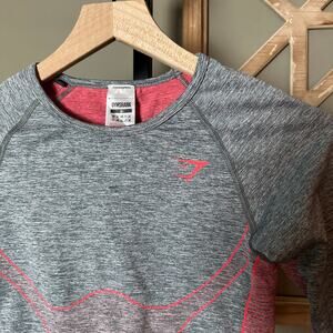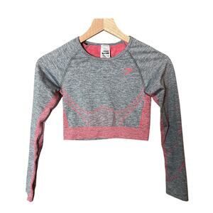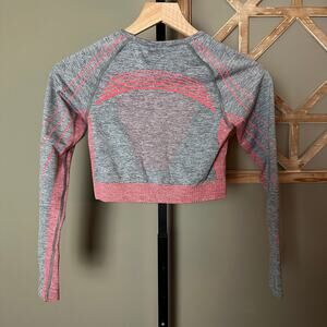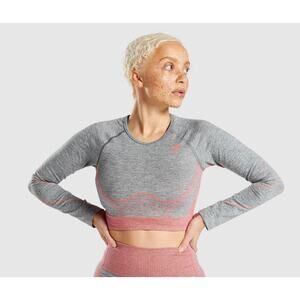Gymshark Hyper Amplify Long Sleeve Crop Top Charcoal Marl/ Coral Small