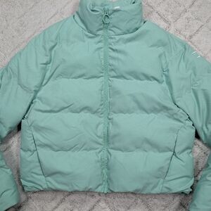 Gymshark Jacket Womens XS Green Mint Puffer Quilted Full Zip High Neck Cozy Gently Pre-Owned. Great condition. No flaws. Folding zip to front with branded puller. Zipper Pockets. High neck collar. White printed logo. Polyester. Approximate Measurements: Pit to pit 21” Length 21” 10644