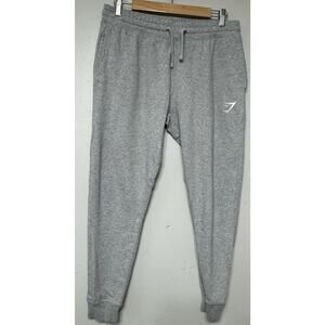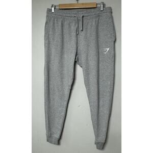 Gymshark Crest Jogger pants Mens size medium Slim Fit Fleece Tapered grey. Pull-on with elastic waist and drawstring. In great pre-owned condition. No stains rips or holes. Non-smoking home.