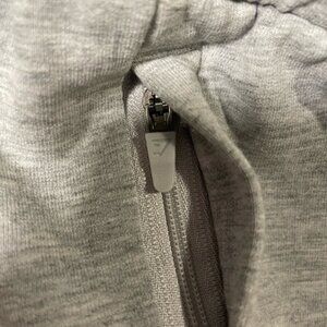 Gymshark joggers with zipper hand pockets are in good used condition. They do have a small stain. That is really hard to see. Please see last 2 pictures before buying. Other than that they are in good used condition. Measurements are approximately.