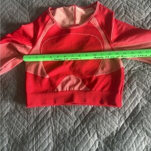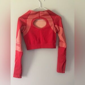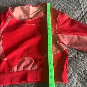 Gymshark Long Sleeve Crop Top Small. Red. No size tag please see measurements. Cut out circle in back. Stretch. Workout wear.