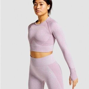 Gymshark Long Sleeve Cropped Top Keyhole Back in Purple Marl Gray Size Medium