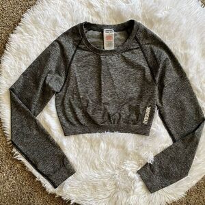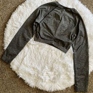 Gymshark Long Sleeve Crop Top Stretchy Womens Size Medium Gray