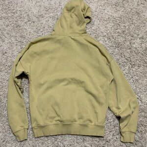 This is a size small men's Gymshark Crest Oversized Hoodie in great condition. The color is Khaki Yellow and the measurements are chest: 39 cm and waist: 31.5 cm.