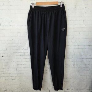 Gymshark Mens Jogger Pants Size M Black Active Gym Train Run Elastic Waist. Very good pre-owned condition, no flaws.