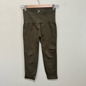 Gymshark Olive Green Seamless Cropped Leggings Size Small