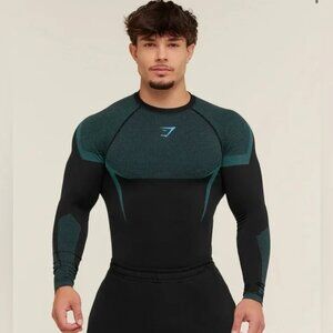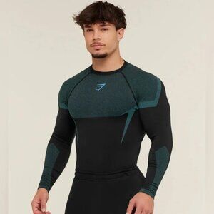 100% Authentic, Deadstock, Never Worn Gymshark Onyx 5.0 Seamless LongSleeve T-Shirt Muscle Fit Black/Brand Blue Size Small