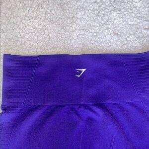 These Gymshark leggings in a vibrant purple hue are designed for both style and performance. Made from a smooth, stretchy fabric, they offer a form-fitting silhouette with a full-length, tapered design. The wide elastic waistband ensures a secure and comfortable fit, perfect for workouts or casual wear. One size