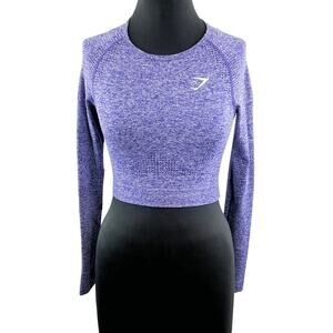 Gymshark Purple Vital Seamless 2.0 Long Sleeve Crop Top Sweat-Wicking Size M