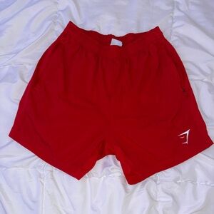 Vibrant red Gymshark shorts. Comfortable fit. Elastic waistband.