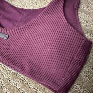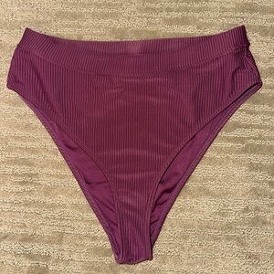 Super comfy and supportive Gymshark bikini. Very flattering high rise fit bottom and scoop neck top. Ribbed fabric, gymshark logo metal detail on top. Removable padding, elastic waistband. Good condition with the exception of some sunscreen markings as shown in pictures and reflected in price. I’m sure they could be removed but I’m unsure how. Offers welcome!