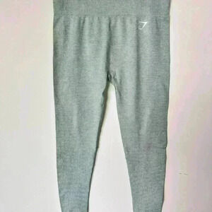 Gymshark Seamless High-Waisted Leggings in a size L. In excellent “like new” condition. Size tag has been removed. Logo front top and leg at bottom. Greenish grey tone.