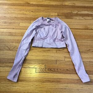 Gymshark Shirt Womens Medium Flex Crop Top Long Sleeve Cut Out Back Marled Pink